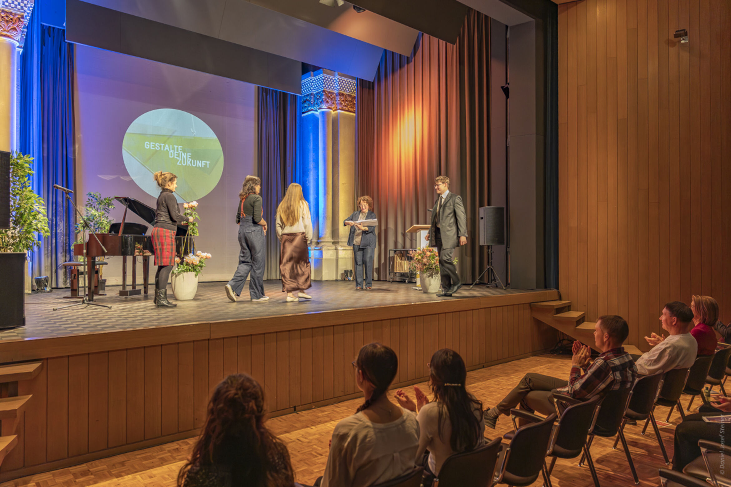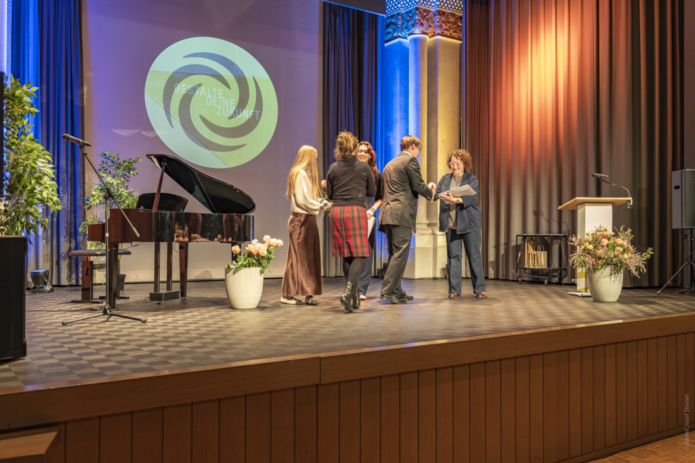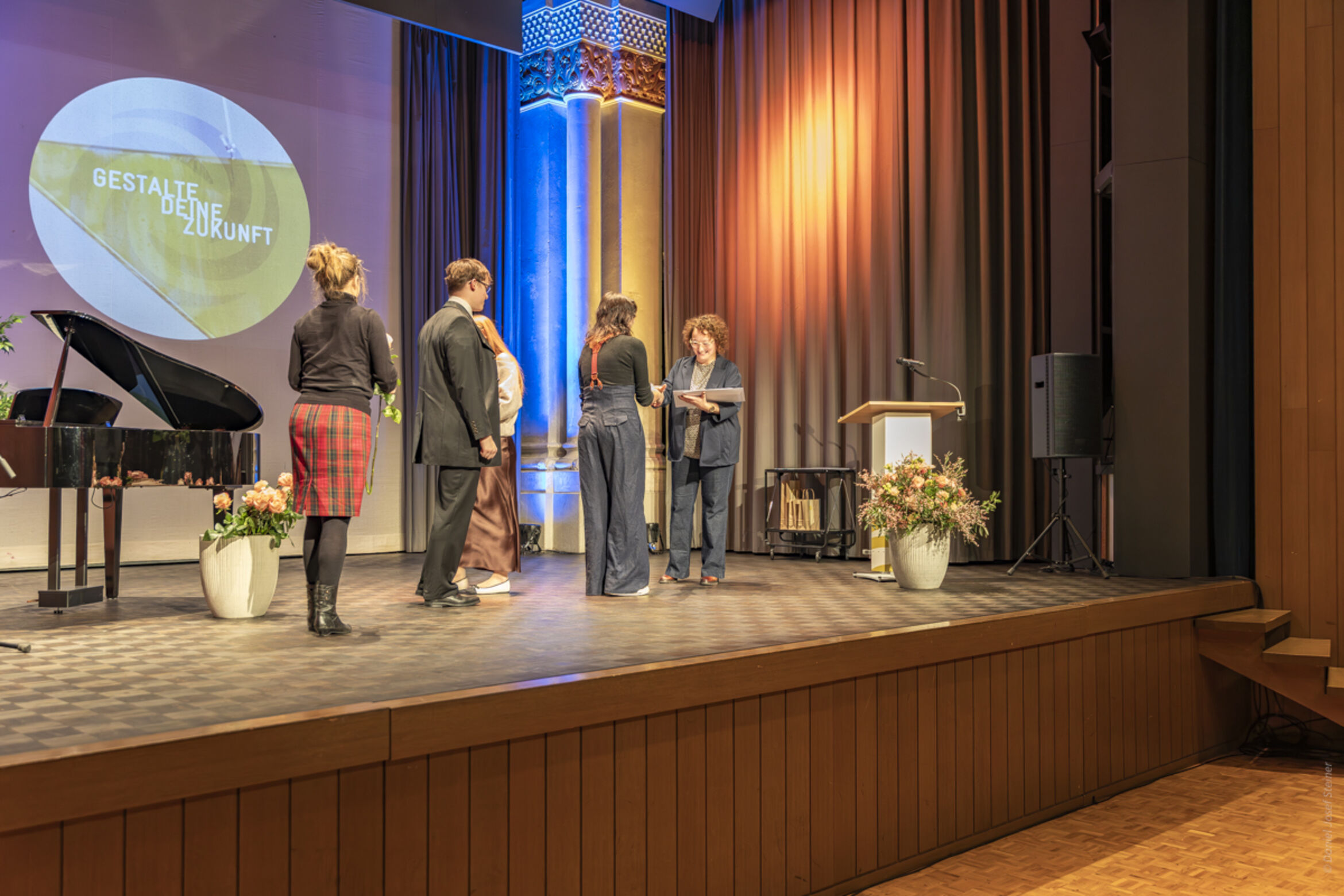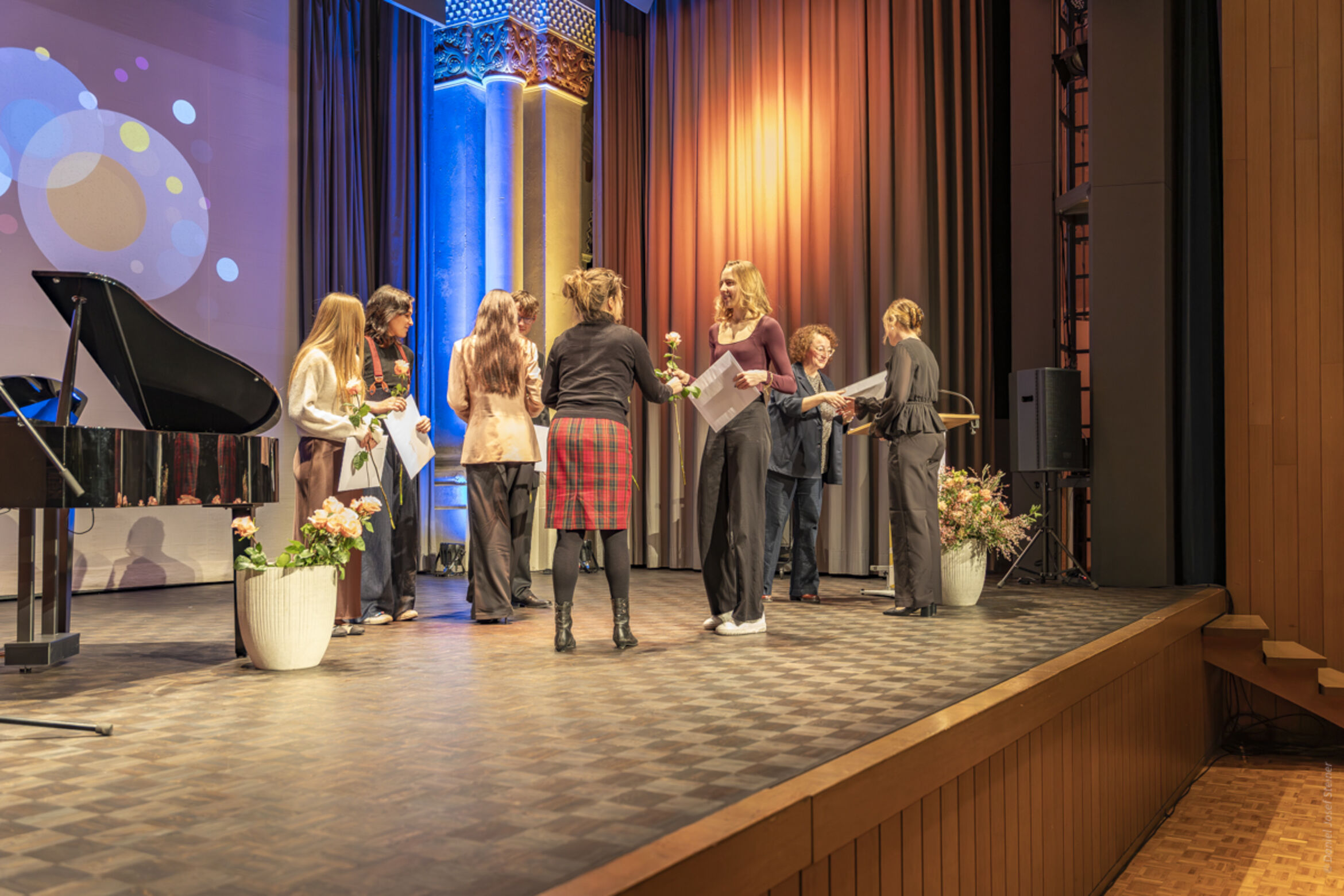 Die beiden Fachmittelschülerinnen Riana Baumann und Amélie Scheuber bereichern die Feier mit ihrem musikalischen Talent und verleihen ihr so einen festlichen Glanz. Begleitet und unterstützt werden sie dabei von Nathalie Nussbaumer, Musiklehrerin am Theresianum.