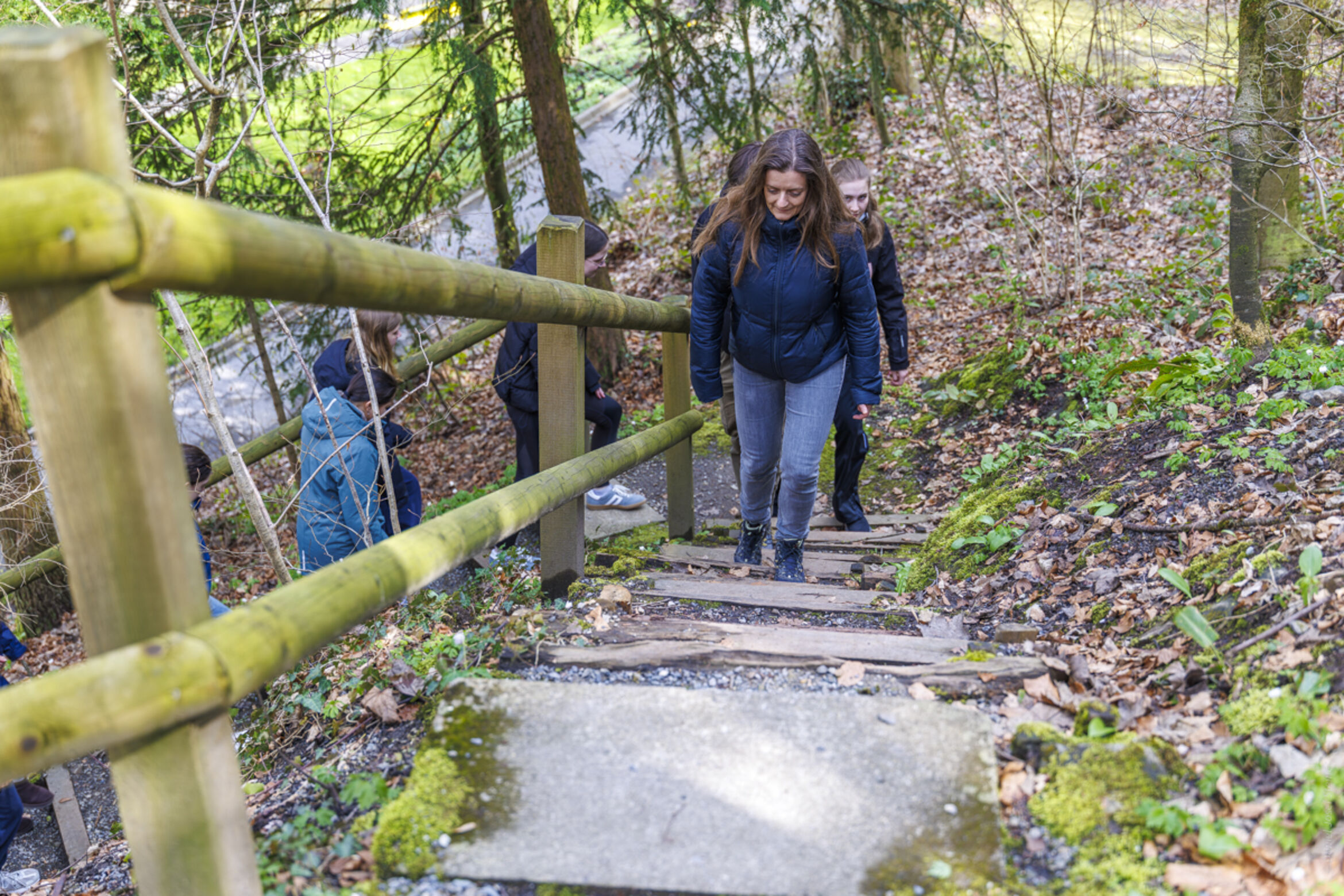 Jeannette Bär, Lehrerin für Geschichte/Politische Bildung und Soziologie, erwartet die Lernenden am Treffpunkt