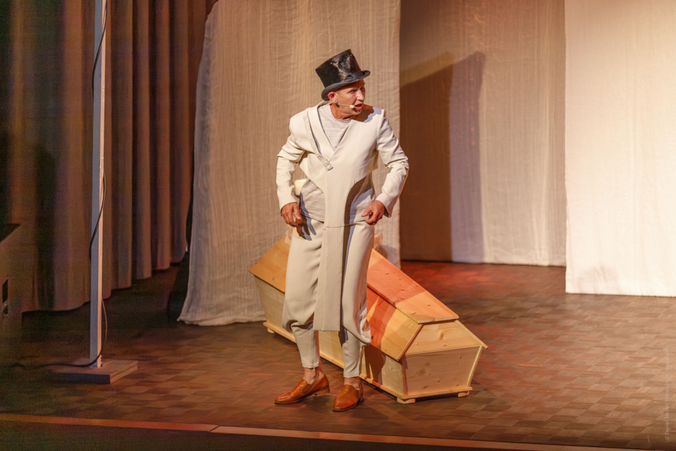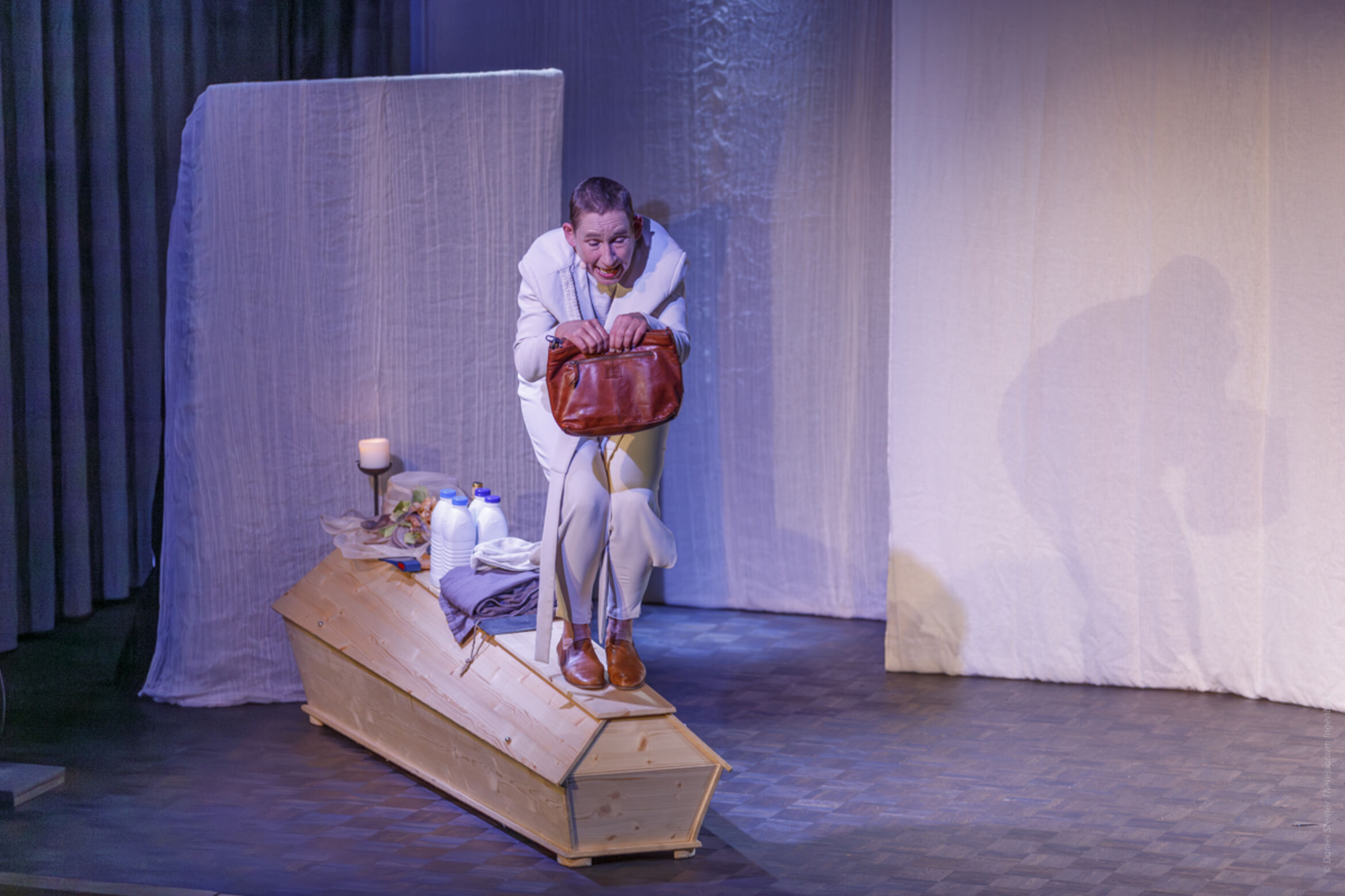 Annette Windlin inszeniert Dürrenmatts Werk nicht als historisches Stück, sondern als schonungslosen Spiegel der Gegenwart. Ihr markantester Eingriff: Sie verdichtet die gesamte Handlung auf lediglich zwei Schauspielende, die alle Rollen übernehmen – von Claire Zachanassian bis zu den Bürgern von Güllen. Diese radikale Reduktion entlarvt die Figuren nicht als individuelle Charaktere, sondern als Facetten ein und derselben zerrissenen Seele. Plötzlich wird deutlich: Die Abgründe, die Dürrenmatt beschreibt – Gier, Schuld, Verdrängung –, sind keine äusseren Konflikte, sie sind innere Kämpfe.