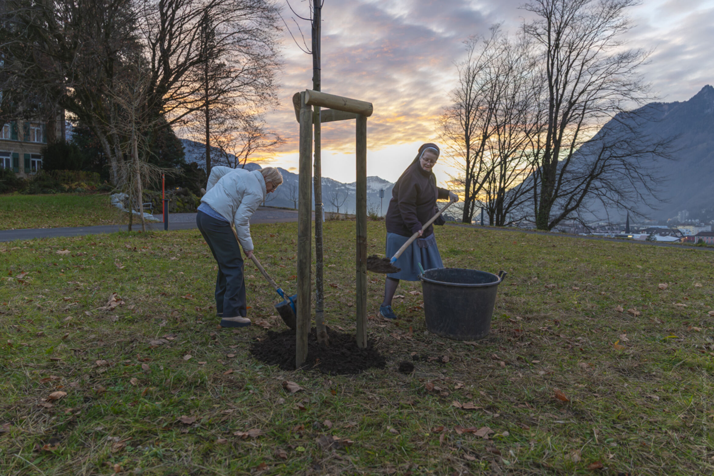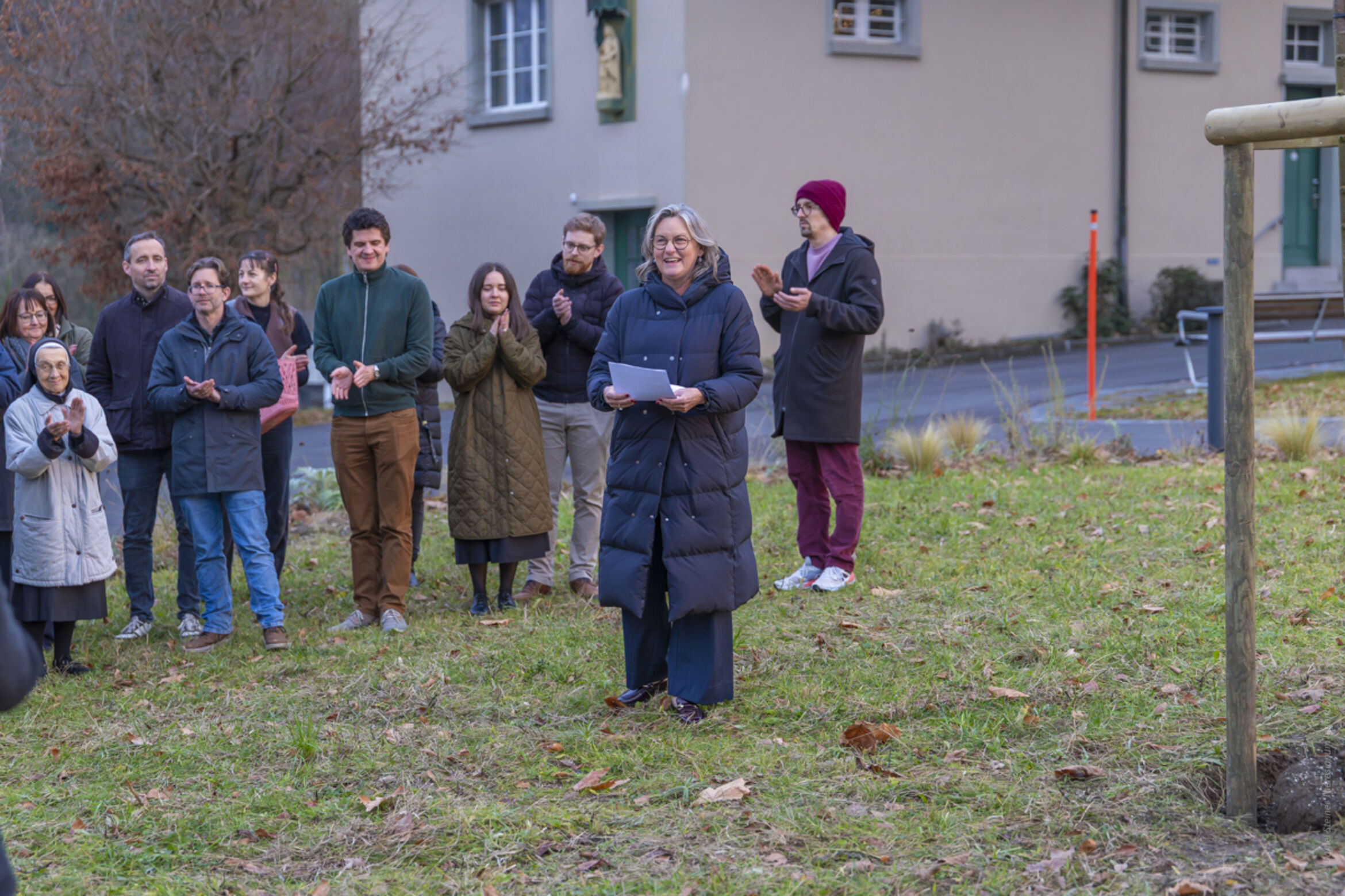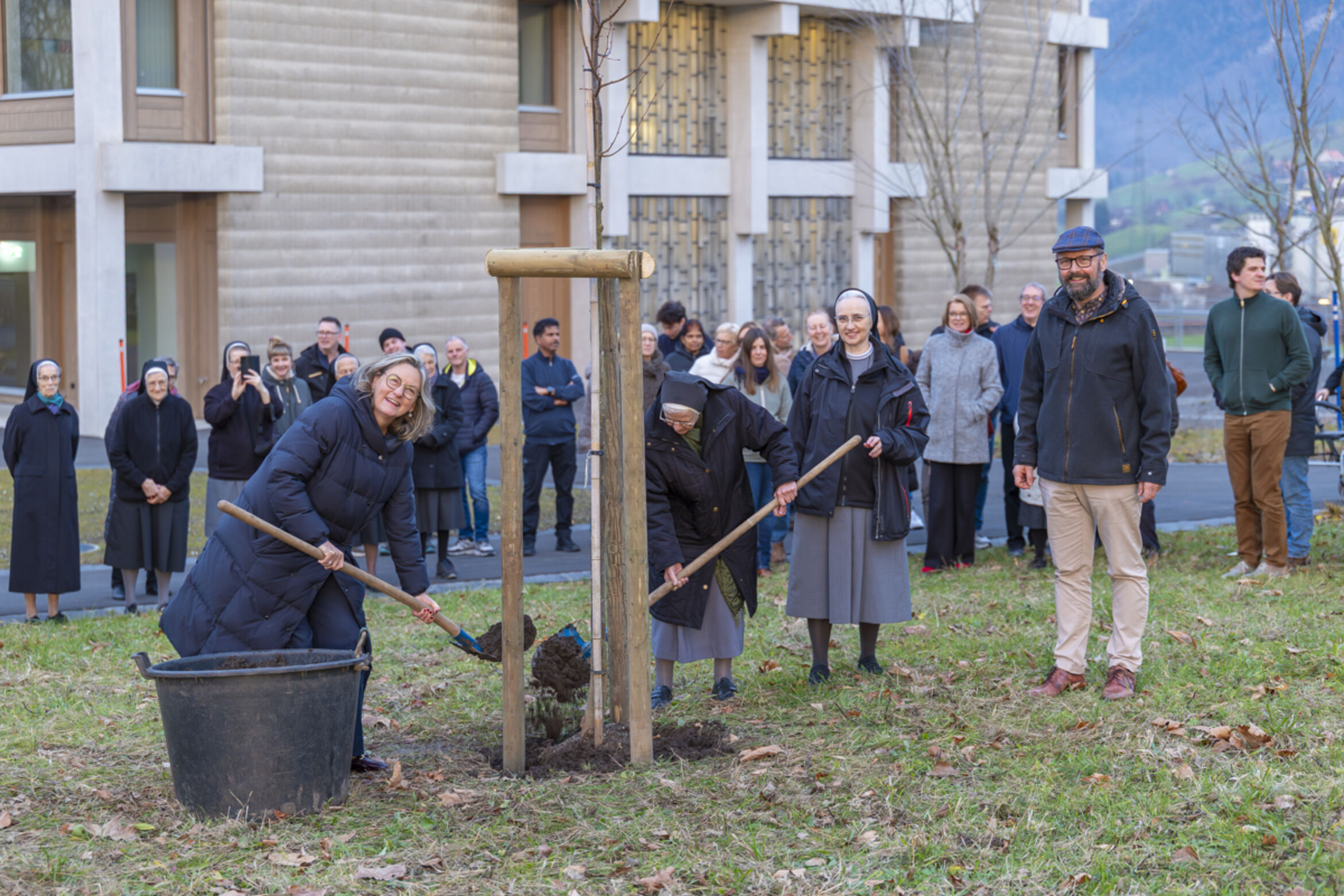 Anwesend waren neben der Rektorin der Schule auch der Stiftungsratspräsident René Baggenstos sowie die Oberin Sr. Tobia Rüttimann, beide Mitglieder des Stiftungsrats. Gemeinsam setzten sie den Baum als Zeichen der Verbundenheit und des Respekts vor dem Wirken Mutter Maria Theresias. Ihr berühmtes Zitat «Das Gramm Gold entdecken, das in jedem Menschen verborgen ist» hallte dabei symbolisch mit: Die Winterlinde, bekannt für ihre Langlebigkeit und Widerstandsfähigkeit, soll künftig nicht nur den Park bereichern, sondern auch an diesen Auftrag erinnern.