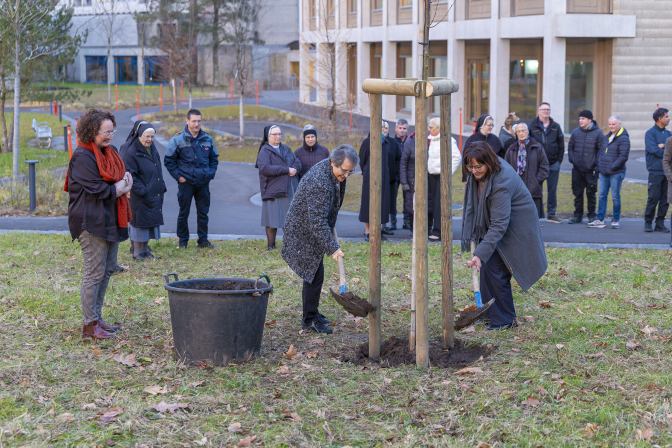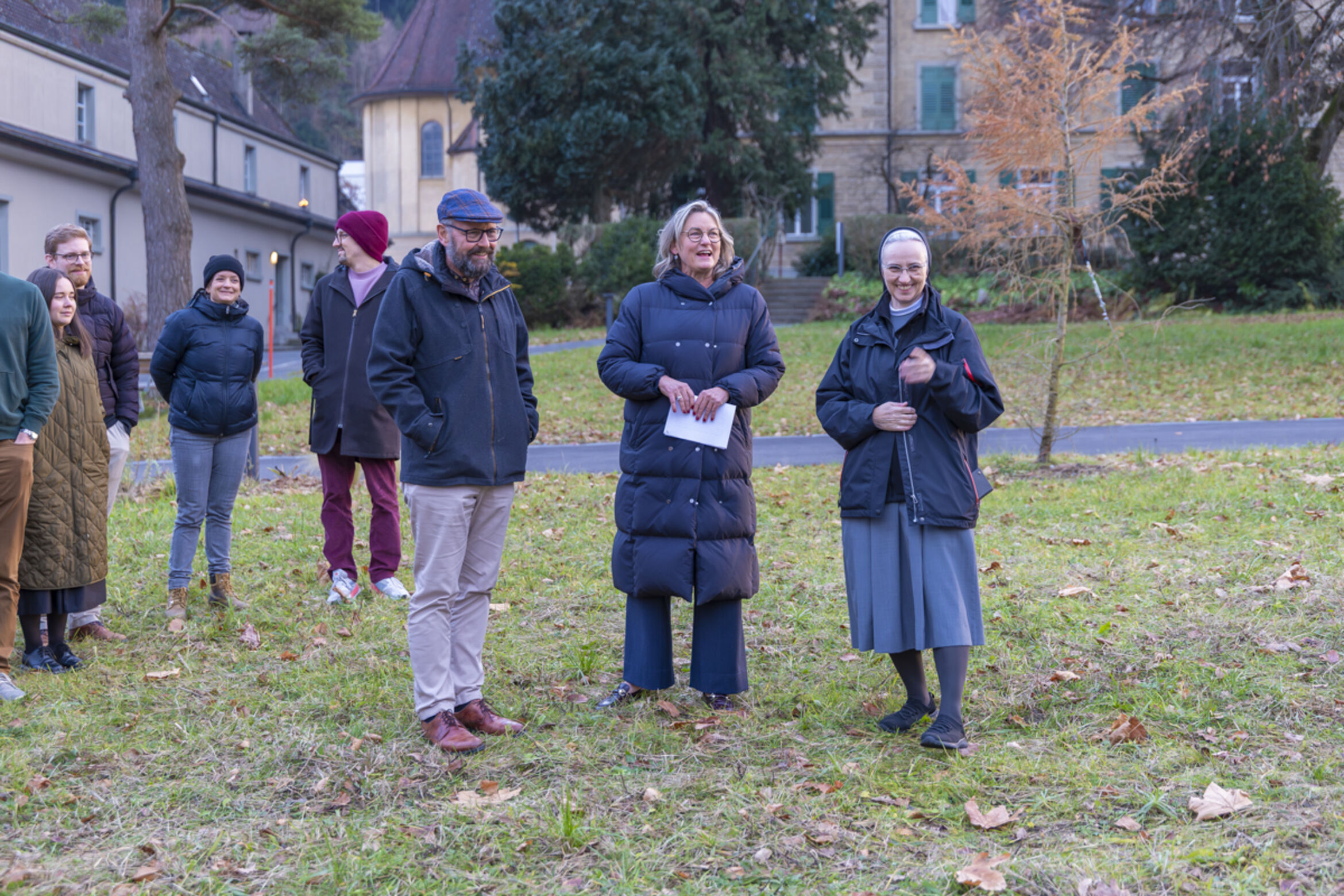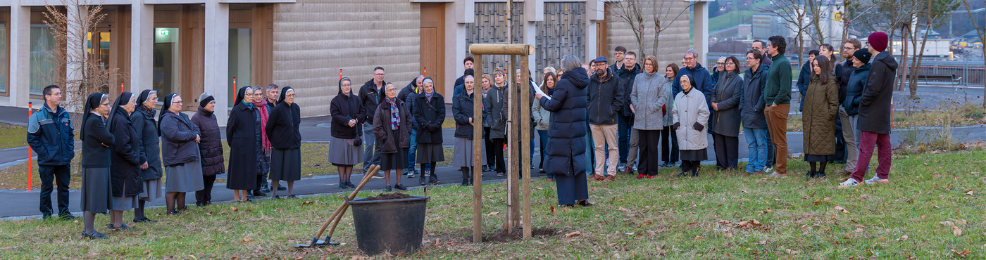 Am Nachmittag des 17. Dezember 2025 versammelten sich Vertreter*innen der Stiftung Theresianum Ingenbohl im Park vor dem neuen Pflegeheim St. Josef auf dem Klosterhügel. Anlass war die feierliche Pflanzung einer Winterlinde – ein besonderes Geschenk an das Kloster Ingenbohl. Die Pflanzung fand zu Ehren des 200. Geburtstags von Mutter Maria Theresia statt und steht zugleich als Symbol der Dankbarkeit für die fortwährende Unterstützung durch das Kloster.